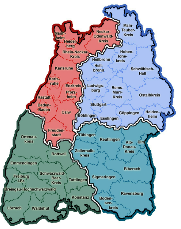 Sie können eine Karte von Baden-Württemberg benutzen. Klicken Sie auf eine Stadt oder auf einen Landkreis. Dann sehen Sie die Fehler.